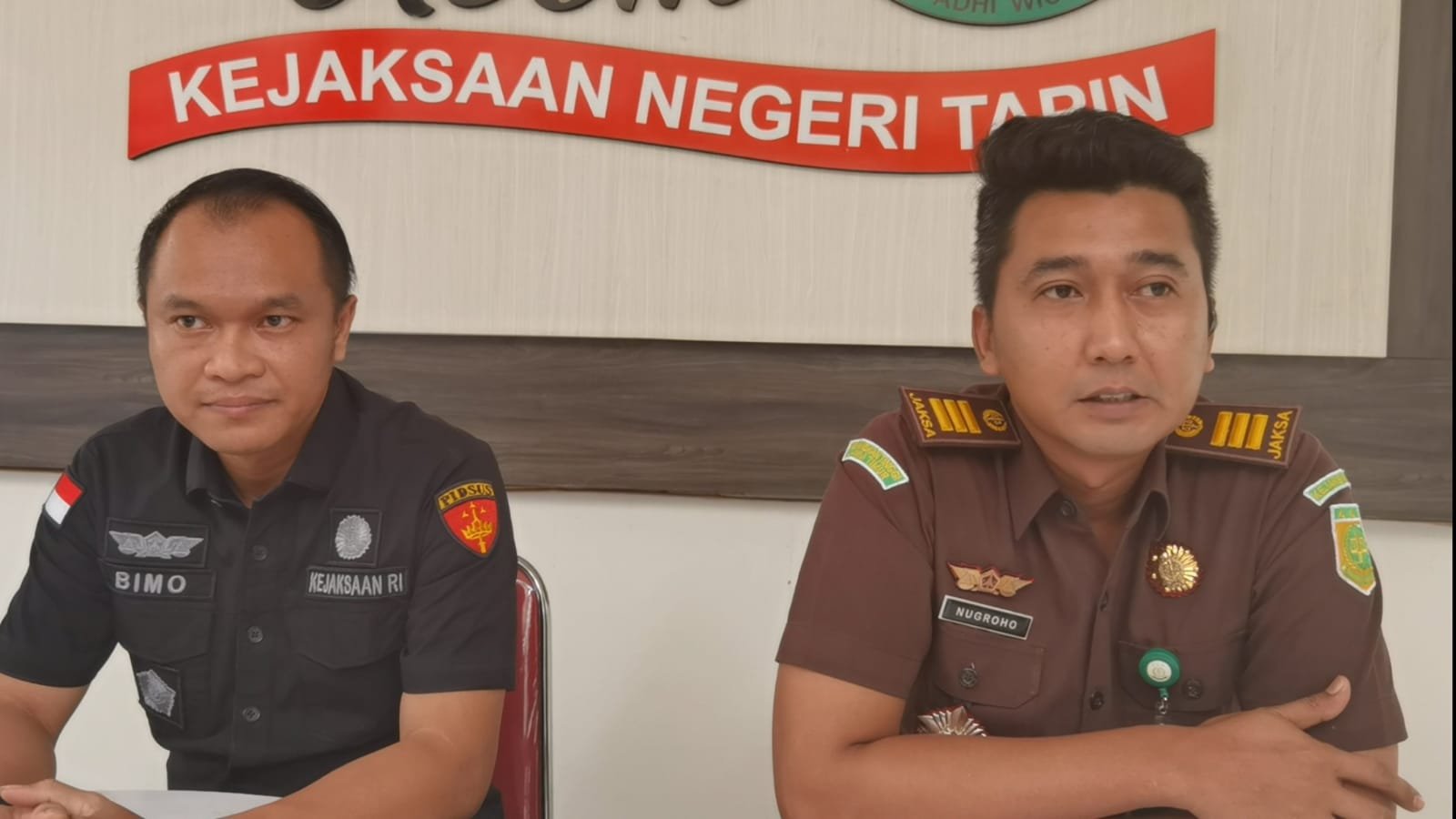 Kepala Seksi Tindak Pidana Khusus Kejari Tapin Bimo Bayu Aji Kiswanto saat press release (Foto...