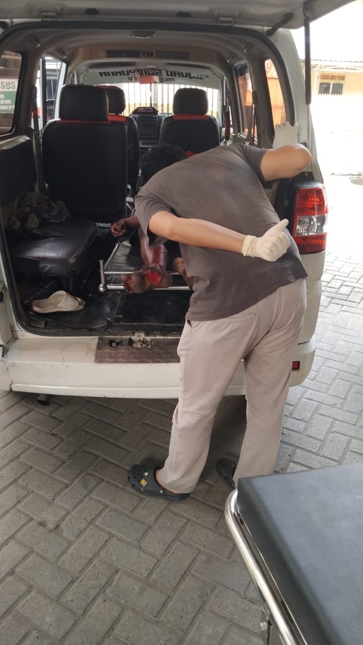 Korban penganiayaan hingga tewasnya buruh Pasar Antasari Banjarmasin saat dievakuasi ke Kamar Mayat RSUD Ulin,...