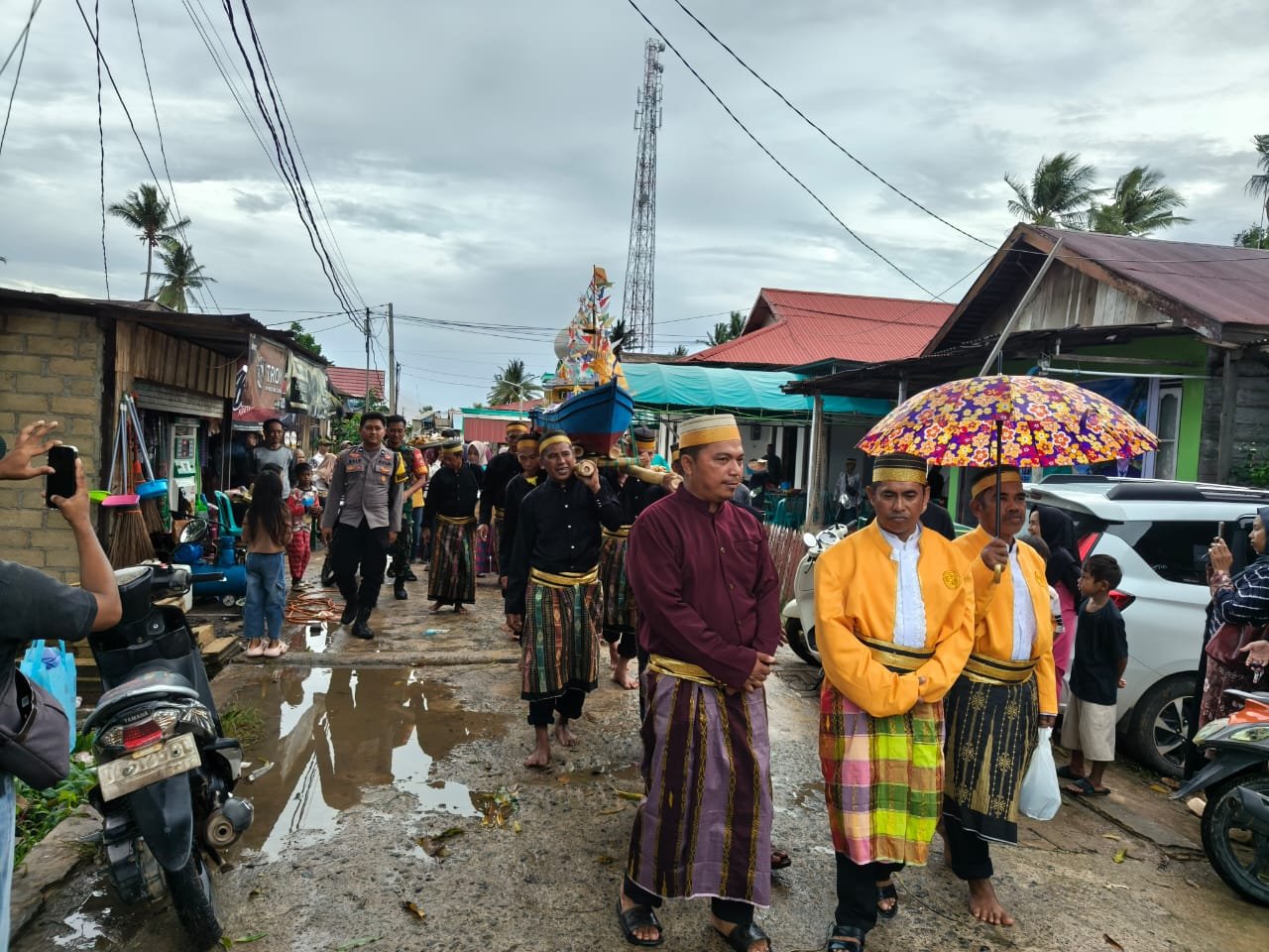 Puncak prosesi digelar tepat pukul 12.00 Wita. Kepala kambing dan replika kapal nelayan dilepaskan ke laut, disaksikan oleh warga dengan penuh haru dan kekhidmatan. Simbol tersebut menjadi bentuk persembahan rasa terima kasih atas hasil laut yang melimpah sekaligus doa memohon perlindungan bagi para nelayan yang menggantungkan hidup pada ombak dan angin Teluk Tamiang.