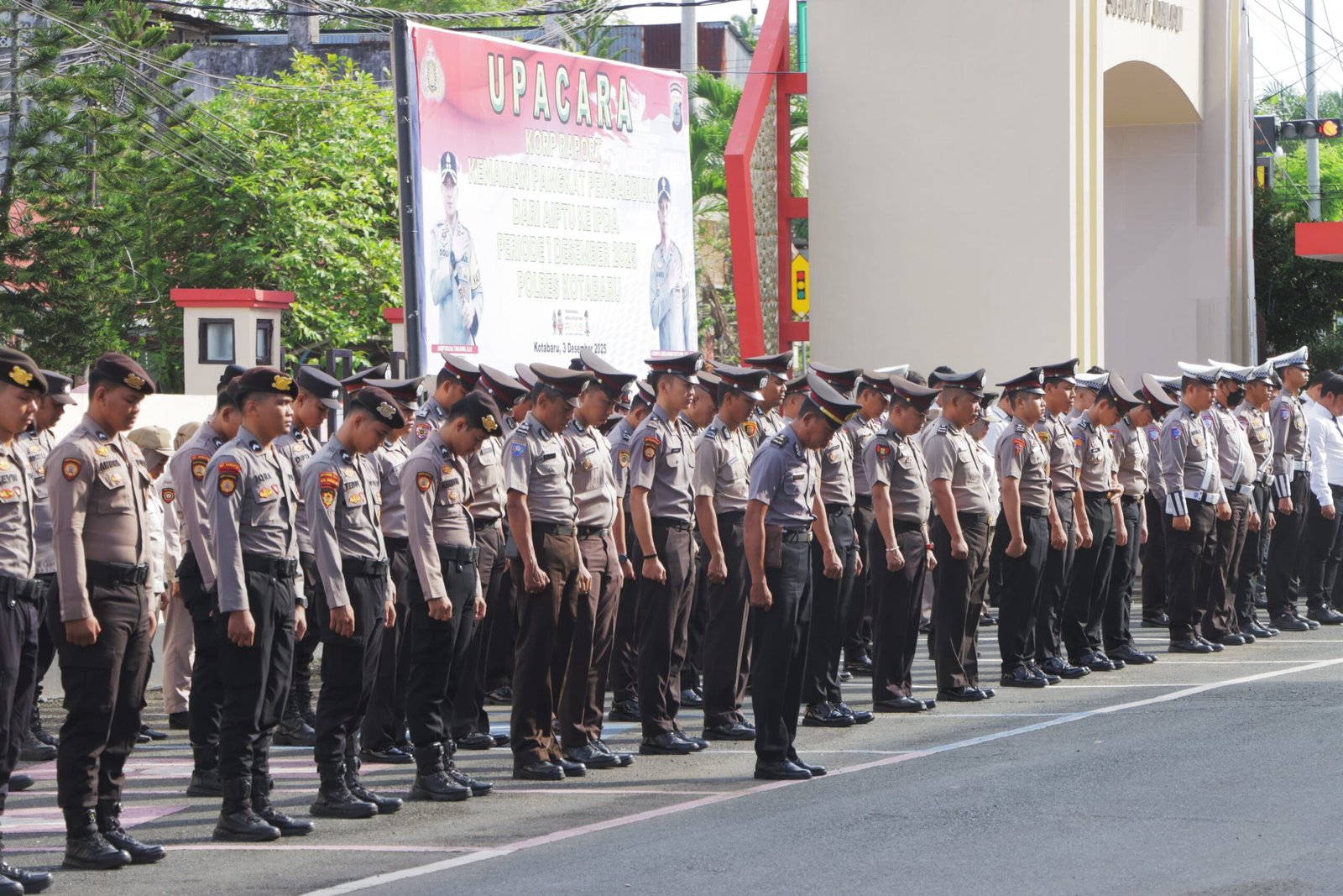 Telisikindonesia.com – Kotabaru, Polres Kotabaru melaksanakan Upacara Korp Raport Kenaikan Pangkat Pengabdian pada Rabu (03/12/2025) di Lapangan Apel Polres Kotabaru. Upacara yang dimulai pukul 08.00 Wita ini dipimpin langsung oleh Kapolres Kotabaru AKBP Doli M. Tanjung, S.I.K., serta dihadiri para pejabat utama, Kapolsek jajaran, perwira, personel, dan Bhayangkari.